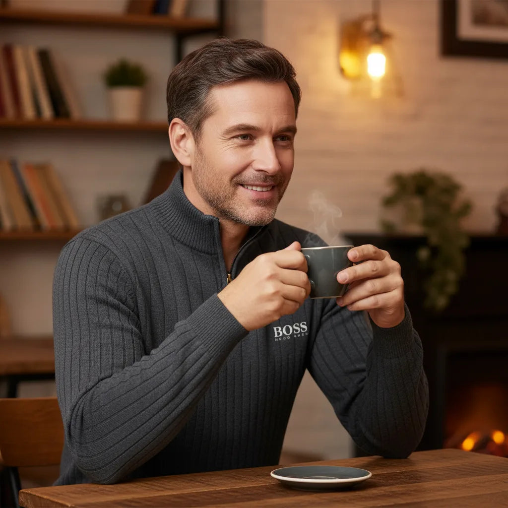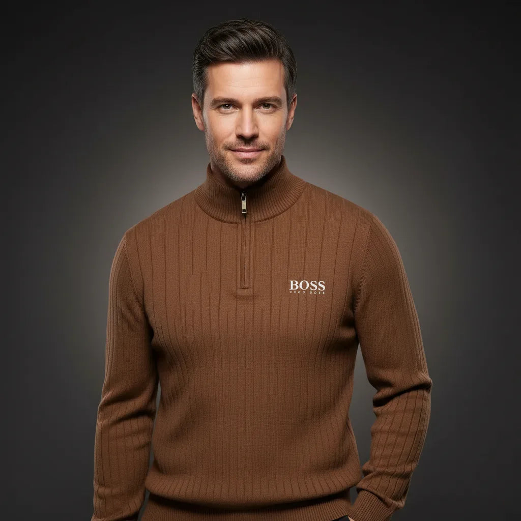 Elegant, versatile, and comfortable — designed with high-quality ribbed fabric, a fitted cut, and meticulous finishing. Featuring a practical zipped neck, this sweater adapts to both casual and formal looks.